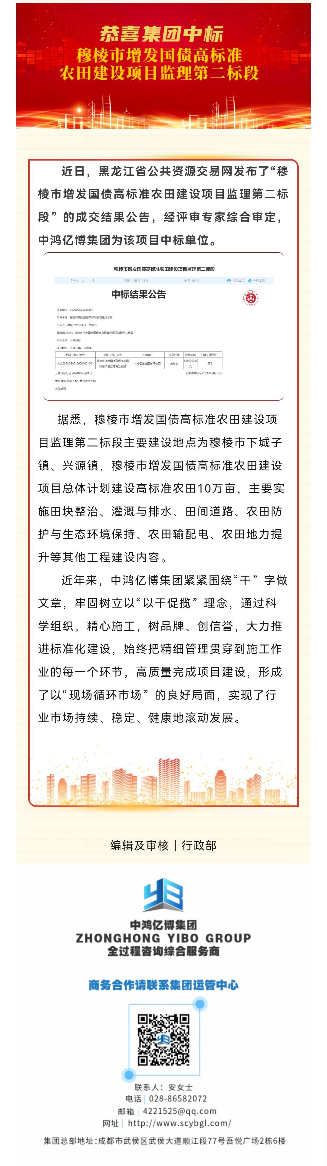 億博動態(tài)丨喜報來襲—恭喜集團(tuán)中標(biāo)“穆棱市增發(fā)國債高標(biāo)準(zhǔn)農(nóng)田建設(shè)項(xiàng)目監(jiān)理第二標(biāo)段”
