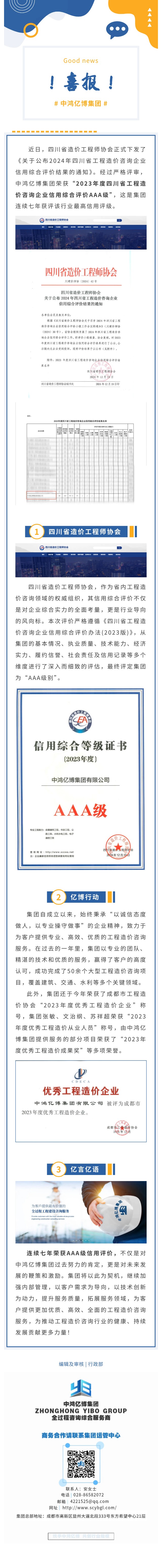 億博動(dòng)態(tài) | 中鴻億博集團(tuán)連續(xù)七年榮獲“四川省工程造價(jià)咨詢企業(yè)信用綜合評(píng)價(jià)AAA級(jí)”