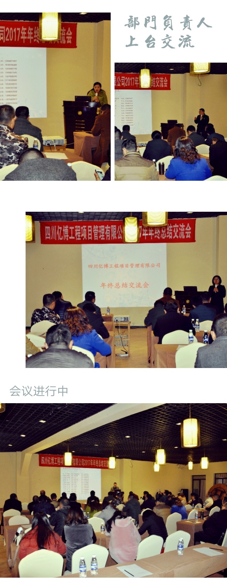 2017年是我們四川億博工程項(xiàng)目管理有限公司成效顯著的一年,面對(duì)當(dāng)前的經(jīng)濟(jì)形勢(shì),企業(yè)必須遠(yuǎn)見(jiàn)卓識(shí),建立健全健康可持續(xù)發(fā)展機(jī)制,構(gòu)建企業(yè)核心競(jìng)爭(zhēng)力。我公司于2017年 12 月 22、23 日,在歷史文化名山道教圣地青城山睿宏國(guó)際養(yǎng)生酒店隆重舉行“四川億博工程項(xiàng)目管理有限公司工作交流會(huì)”,與行業(yè)精英交流、探討,共謀發(fā)展。