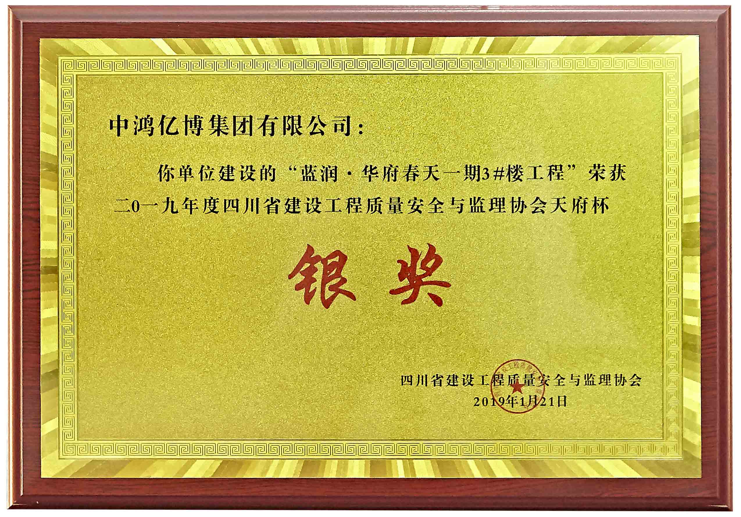“天府杯”是四川省建筑行業(yè)建設(shè)工程質(zhì)量的最高榮譽(yù)獎(jiǎng),“天府杯”分為金獎(jiǎng)和銀獎(jiǎng),其工程質(zhì)量應(yīng)達(dá)到省內(nèi)一流水平。2019年9月,來自四川省建設(shè)工程質(zhì)量安全與監(jiān)理協(xié)會(huì)文件(川建質(zhì)安監(jiān)協(xié)[2019]6號(hào))通報(bào)信息,我司監(jiān)理承建的“雅安市文化中心項(xiàng)目二期工程(多功能演藝廳及配套商業(yè))”獲評表彰為2016~2017年度四川省建設(shè)工程天府杯工程(省優(yōu)質(zhì)工程)金獎(jiǎng),北城香榭工程及藍(lán)潤·華府春天一期3#樓工程獲評表彰為2016~2017年度四川省建設(shè)工程天府杯工程(省優(yōu)質(zhì)工程)銀獎(jiǎng)。