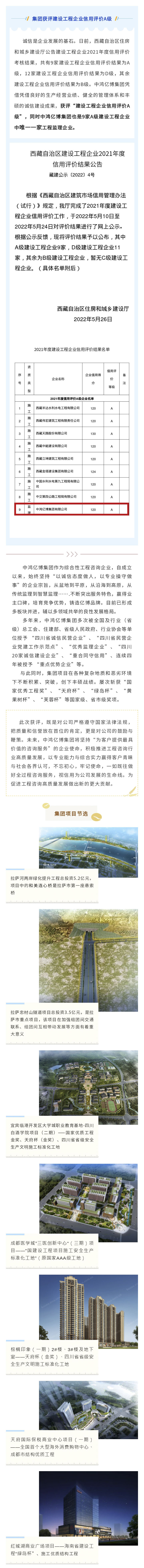 唯一獲評(píng)西藏自治區(qū)“建設(shè)工程企業(yè)信用評(píng)價(jià)A級(jí)”的監(jiān)理企業(yè)——中鴻億博集團(tuán)