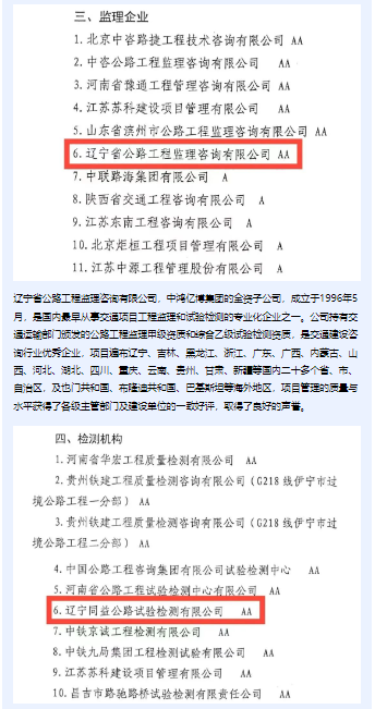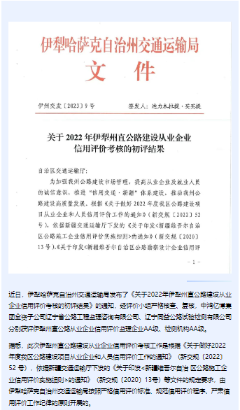 集團(tuán)全資子公司獲評伊犁州直公路從業(yè)企業(yè)信用評價(jià)“監(jiān)理企業(yè)和檢測機(jī)構(gòu)AA級”