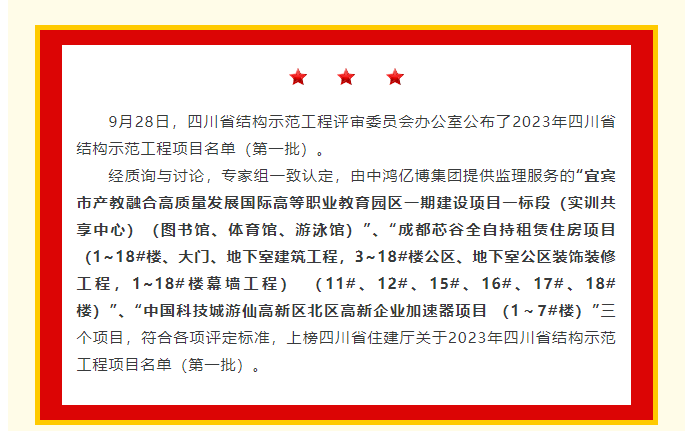 捷報(bào)頻傳!恭喜集團(tuán)三個(gè)監(jiān)理項(xiàng)目獲評(píng)四川省結(jié)構(gòu)示范工程項(xiàng)目
