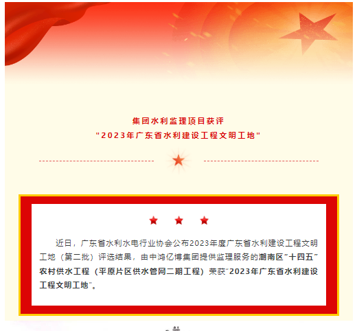 恭喜集團(tuán)水利監(jiān)理項(xiàng)目獲評(píng)“2023年廣東省水利建設(shè)工程文明工地”