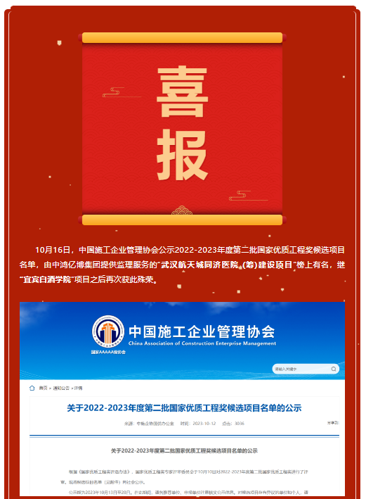 恭喜集團(tuán)監(jiān)理項(xiàng)目再次榮獲“國家優(yōu)質(zhì)工程獎(jiǎng)”!