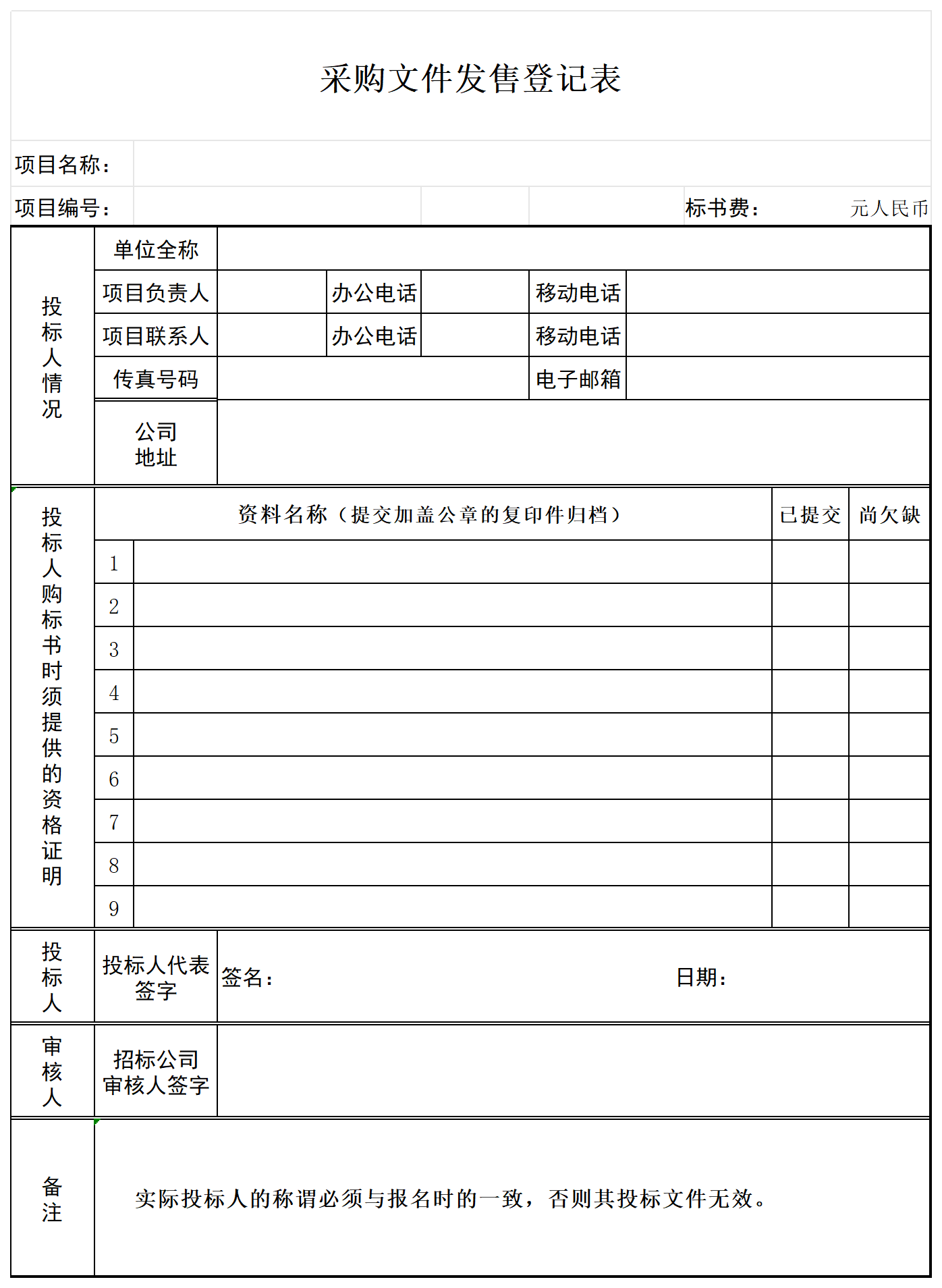 獲取招標(biāo)文件的方式:自行前往購(gòu)買。(購(gòu)買招標(biāo)文件需遞交以下資料并加蓋公章)
