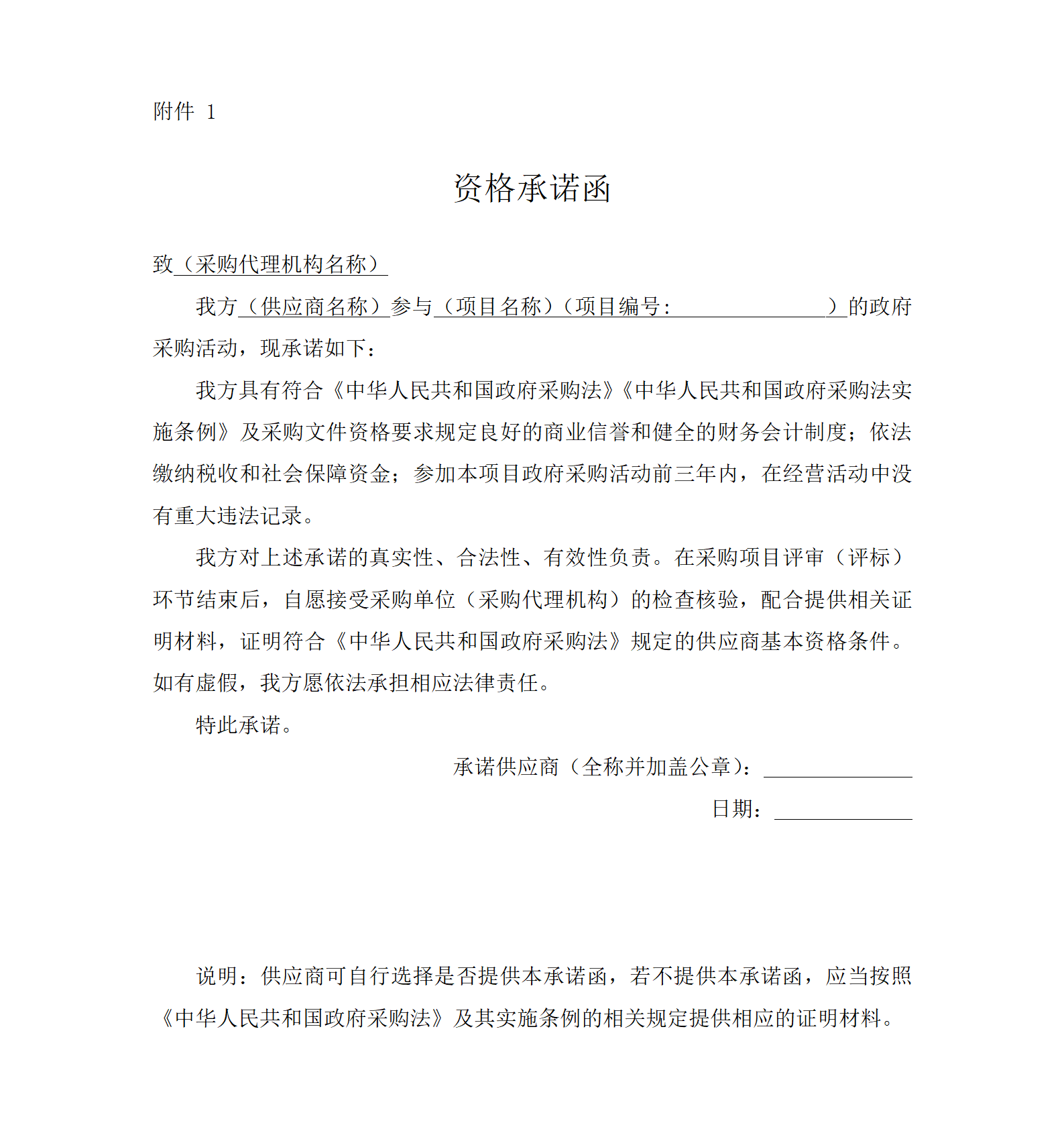 ②有依法繳納稅收和社會(huì)保障資金的良好記錄:提供《資格承諾函》。