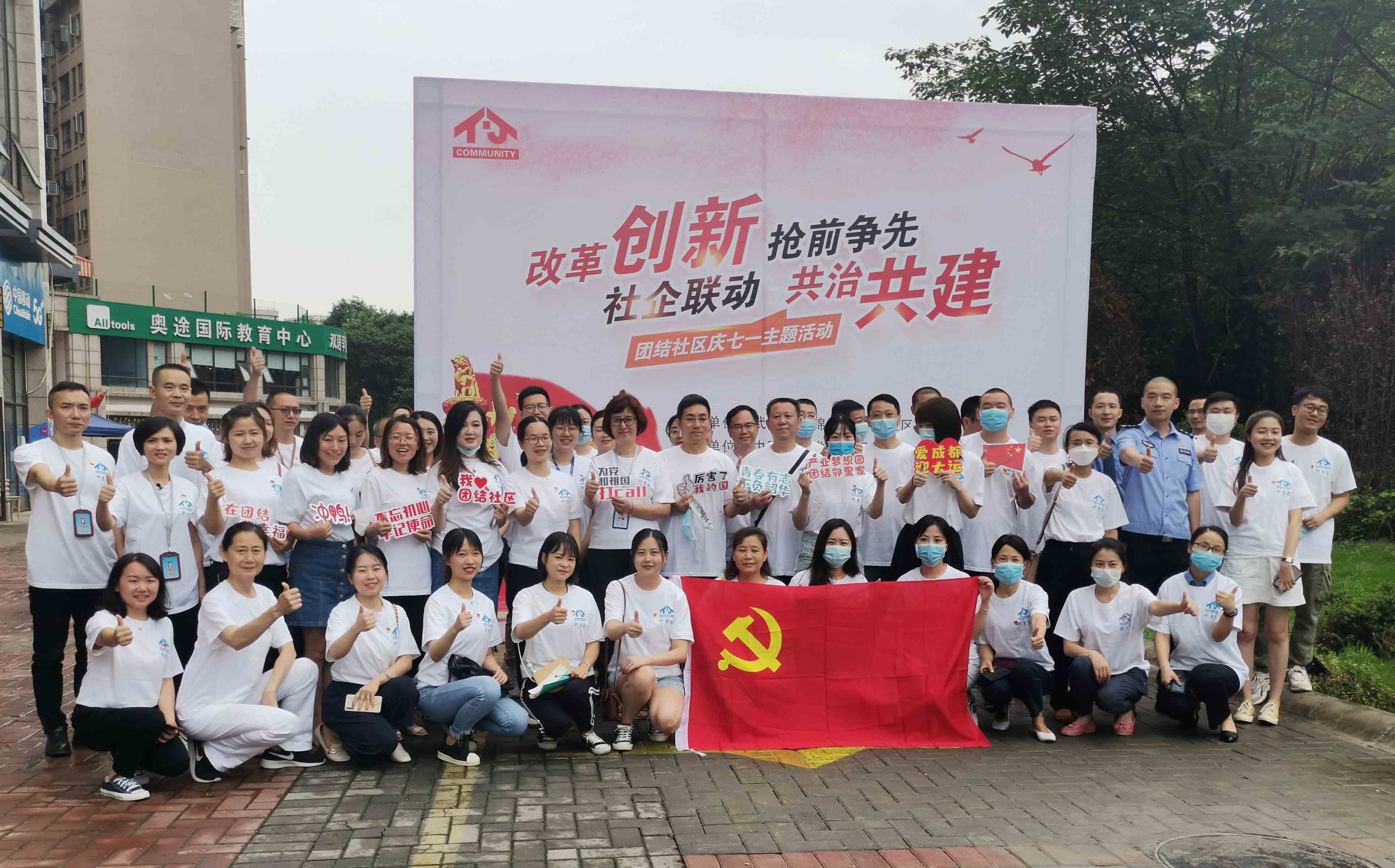 在中國(guó)共產(chǎn)黨成立99周年之際,進(jìn)一步加強(qiáng)轄區(qū)黨組織和黨員隊(duì)伍建設(shè),增強(qiáng)企事業(yè)單位及黨員參與社區(qū)發(fā)展治理的意識(shí),促進(jìn)共建共治共享,推動(dòng)“園區(qū)中的社區(qū)、社區(qū)中的園區(qū)”融合互動(dòng)。7月1日上午,簇錦街道團(tuán)結(jié)社區(qū)黨委攜手中國(guó)共產(chǎn)黨電商云谷總部產(chǎn)業(yè)社區(qū)綜合委員會(huì)聯(lián)合開(kāi)展“改革創(chuàng)新 搶前爭(zhēng)先·社企聯(lián)動(dòng) 共治共建”慶七·一主題活動(dòng)。團(tuán)結(jié)社區(qū)相關(guān)負(fù)責(zé)人、轄區(qū)十七家企事業(yè)單位黨組織參與此次活動(dòng)。億博集團(tuán)黨支部委員王熠瑄攜三位黨員代表受邀出席此次活動(dòng)。