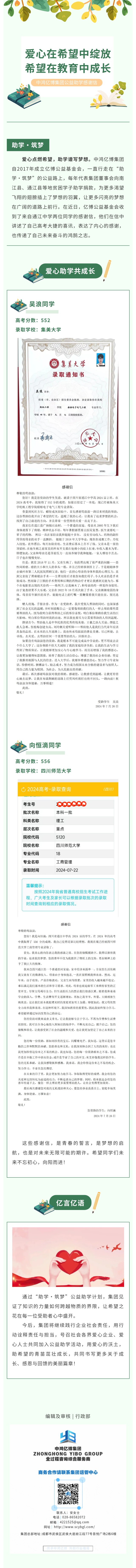 億博公益 | 來自“公益助學(xué)”的感謝信