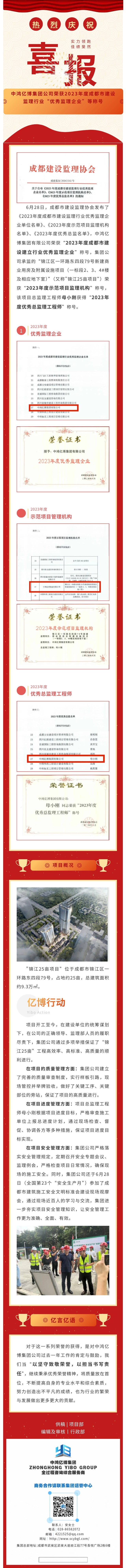 億博動(dòng)態(tài) | 喜報(bào)!恭喜集團(tuán)榮獲2023年度成都市建設(shè)監(jiān)理行業(yè)“優(yōu)秀監(jiān)理企業(yè)”等稱號(hào)