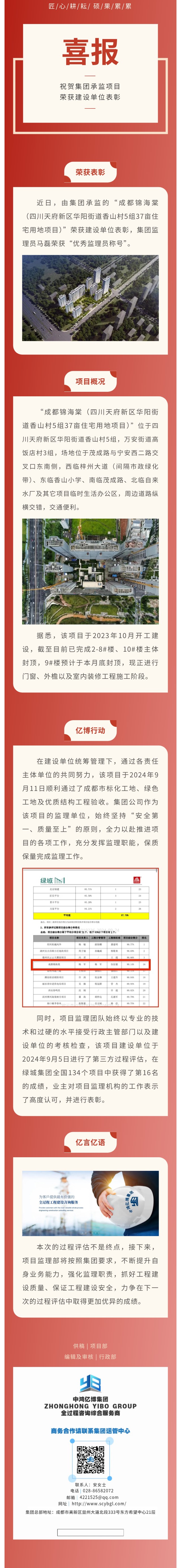 億博動(dòng)態(tài) | 祝賀集團(tuán)承監(jiān)的“成都錦海棠(四川天府新區(qū)華陽(yáng)街道香山村5組37畝住宅用地項(xiàng)目)”榮獲建設(shè)單位表彰