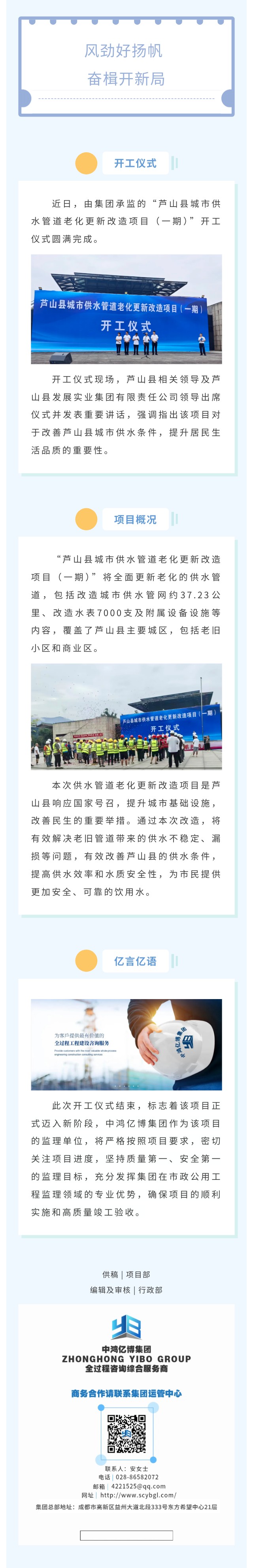 億博動(dòng)態(tài) | “風(fēng)勁好揚(yáng)帆·奮楫開新局”祝賀集團(tuán)承監(jiān)的“蘆山縣城市供水管道老化更新改造項(xiàng)目(一期)”開工儀式圓滿完成
