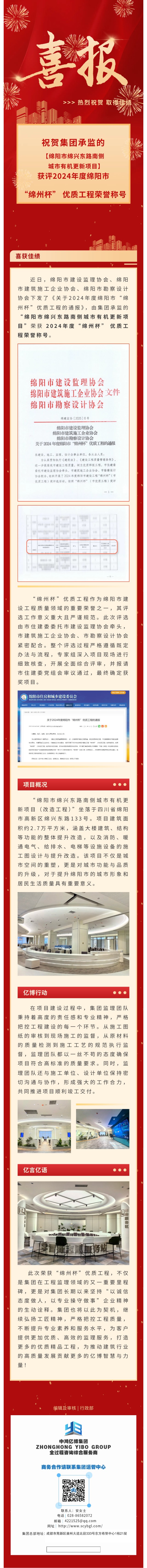 億博動態(tài) | 祝賀集團監(jiān)理項目獲評2024年度綿陽市“綿州杯”優(yōu)質(zhì)工程榮譽稱號
