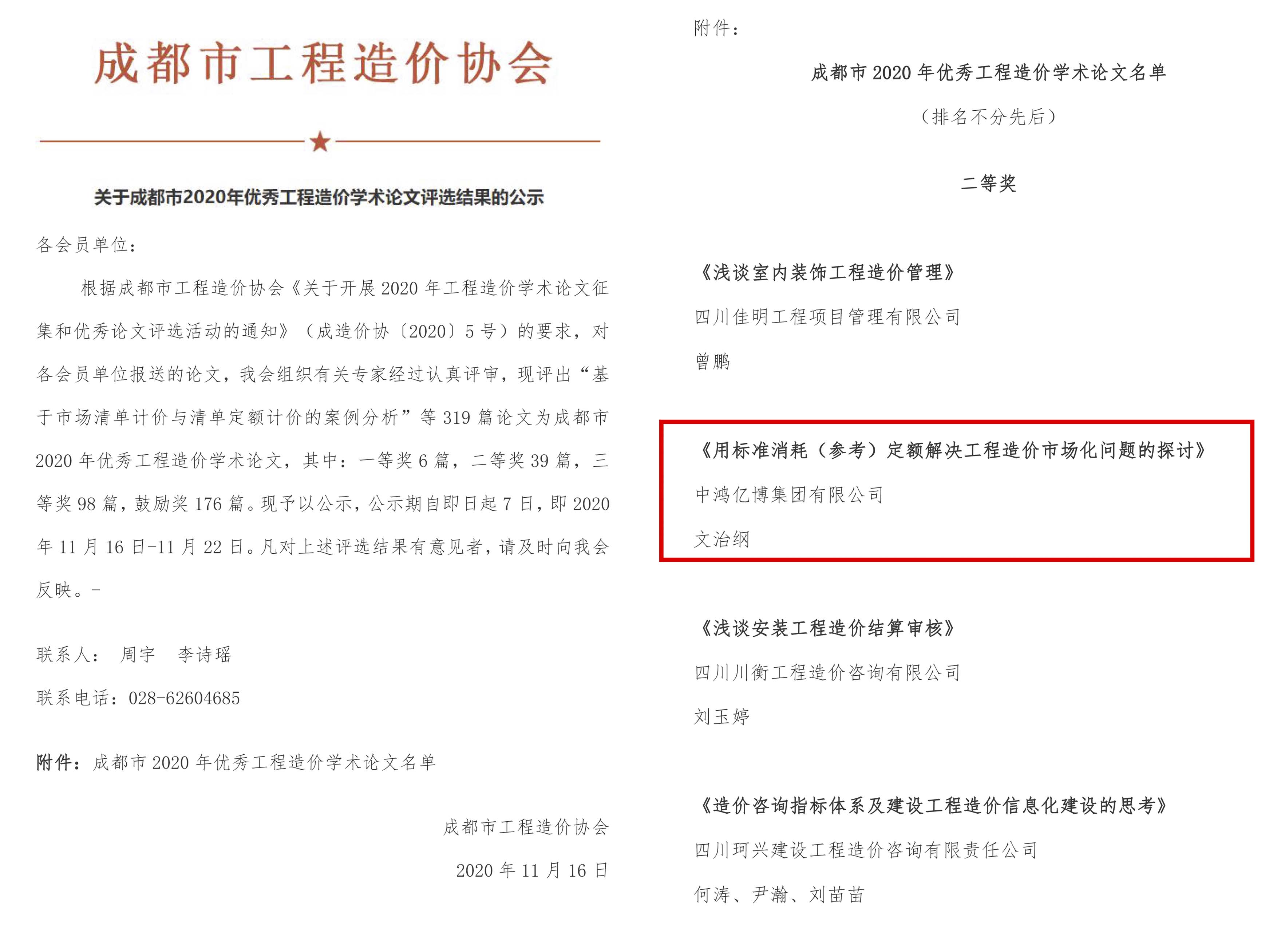 據(jù)悉,為引領(lǐng)工程造價(jià)行業(yè)科學(xué)發(fā)展,促進(jìn)行業(yè)學(xué)術(shù)理論的交流,推動(dòng)技術(shù)進(jìn)步及優(yōu)秀人才成長(zhǎng),此次評(píng)選活動(dòng)面向工程造價(jià)咨詢行業(yè)專業(yè)人士、各級(jí)工程造價(jià)管理單位、工程建設(shè)單位等征稿,參選論文中有319篇獲獎(jiǎng),獲獎(jiǎng)?wù)撐膶⑷脒x《2020優(yōu)秀工程造價(jià)學(xué)術(shù)論文集》,同時(shí)將向國(guó)家、省級(jí)、市級(jí)學(xué)術(shù)期刊推薦發(fā)表。很感謝造價(jià)協(xié)會(huì)提供這樣一個(gè)行業(yè)學(xué)術(shù)理論交流的機(jī)會(huì),促使我們能提高理論素養(yǎng),深入鉆研專業(yè)知識(shí)。未來(lái),我們將切實(shí)抓好品質(zhì)工作,精益求精,全面提升專業(yè)化水平,一如既往的為廣大客戶提供優(yōu)質(zhì)高效專業(yè)的服務(wù)!