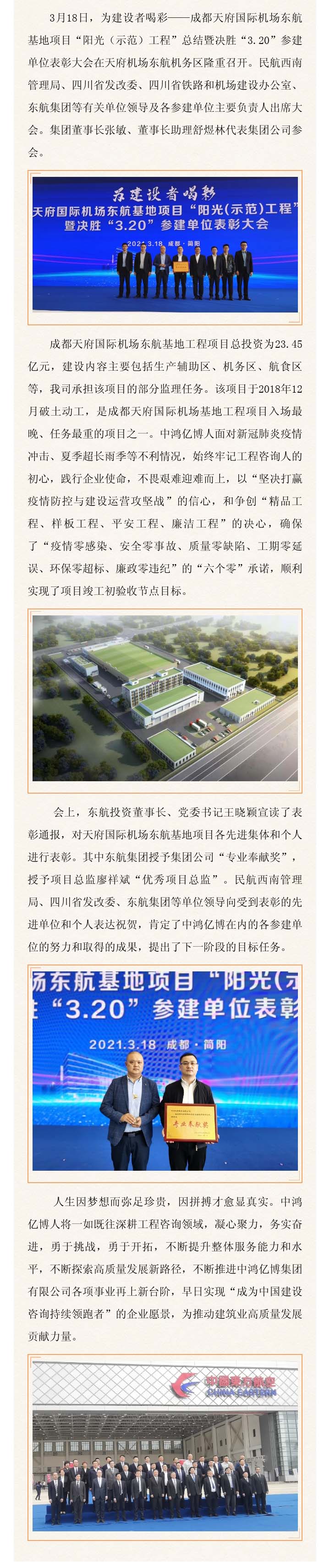 攜手中鴻億博 共創(chuàng)行業(yè)楷模│“天府國際機(jī)場(chǎng)東航基地項(xiàng)目”受到各方高度贊賞